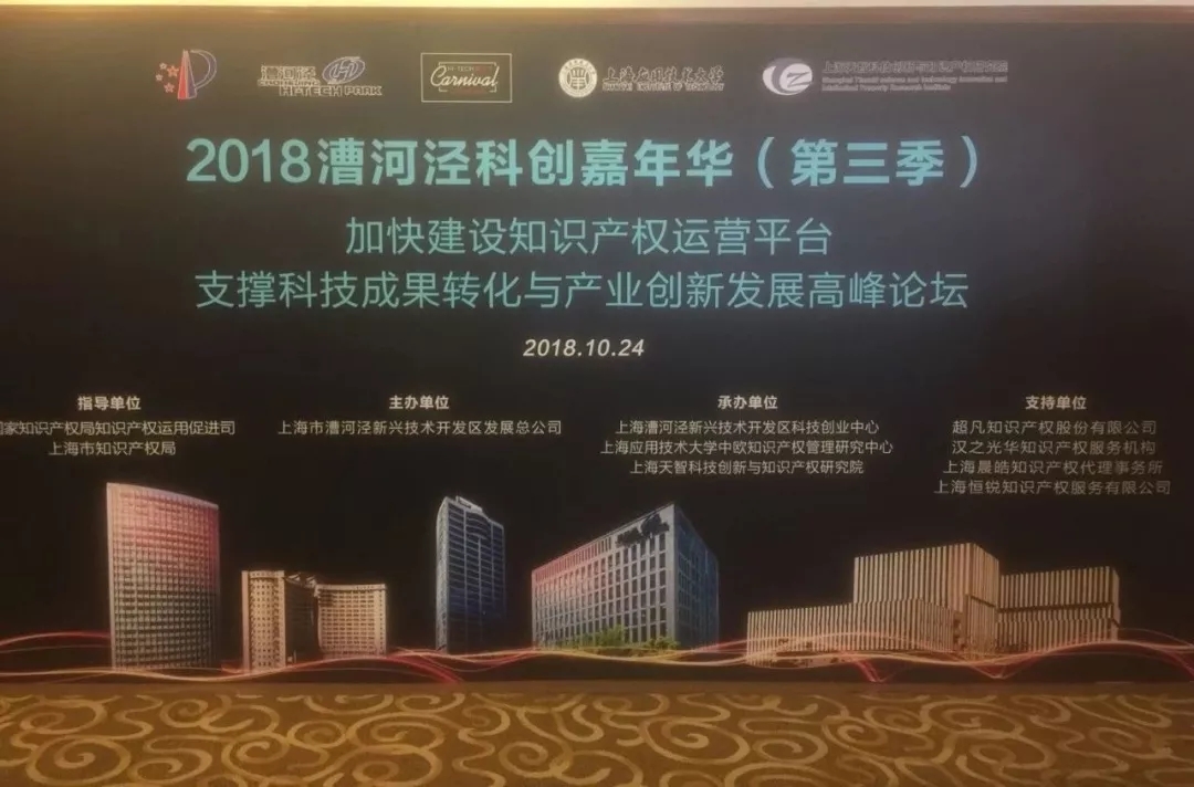 10月24日,2018年漕河泾创新嘉年华(第三季)重要开幕论坛之一“加快建设知识产权运营平台支撑科技成果转化与产业创新发展高峰论坛”在上海漕河泾开发区顺利召开。上海市知识产权局副局长芮文彪出席并致辞,国家知识产权局知识产权运用促进司司长雷筱云、国家知识产权局知识产权发展研究中心主任韩秀成、上海市知识产权局专利管理处处长章永忠等先后作主题演讲。
